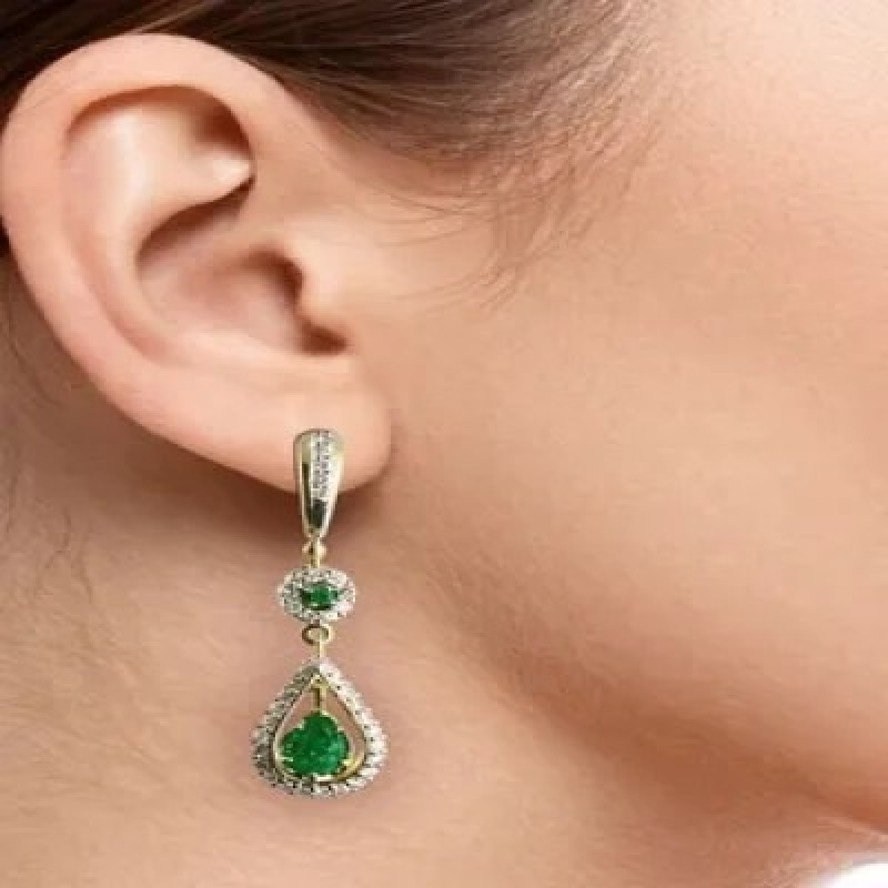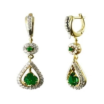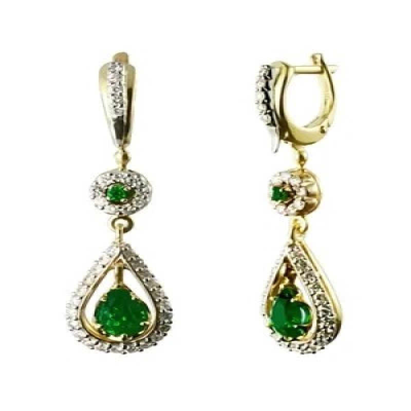 G.st. ЮВЕЛИРНЫЙ ЗАВОД ЗОЛОТОЙ СТАНДАРТ Серьги из желтого золота с натуральными изумрудами и бриллиан
