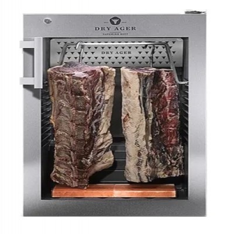 Шкаф DRY AGER DX0500PS предназначен для сухого вызревания говядины, а также производства мясных закусок и колбасных изделий на предприятиях пищевой промышленности, общественного питания и торговли. Модель оснащена электронным контроллером температуры и влажности, откидным дном, интегрированными рейками и регулируемыми по высоте ножками. Дверная рама выполнена из нержавеющей стали, корпус - из стали, окрашенной порошковой краской, дверца - из стекла с УФ-фильтром..Особенности:DX AIRREG: оптимальный воздушный поток, позволяющий сохранять нужный микроклимат внутри, фильтр из активированного угля и система стерилизации воздуха внутри шкафаАвтоматическое размораживаниеПредустановленные программы для вызревания мясаНезначительные потери в весе: от 7 до 8% после 4 недель вызреванияПеренавешиваемая дверьВстроенная в боковые стенки светодиодная подсветка DX LED PremiumДополнительные характеристики:Максимальная загрузка:2 туши длиной до 0,5 м20 кг на полкахОбъем:Общий: 147 лПолезный: 132 лОтделка корпуса: сатинированная черная