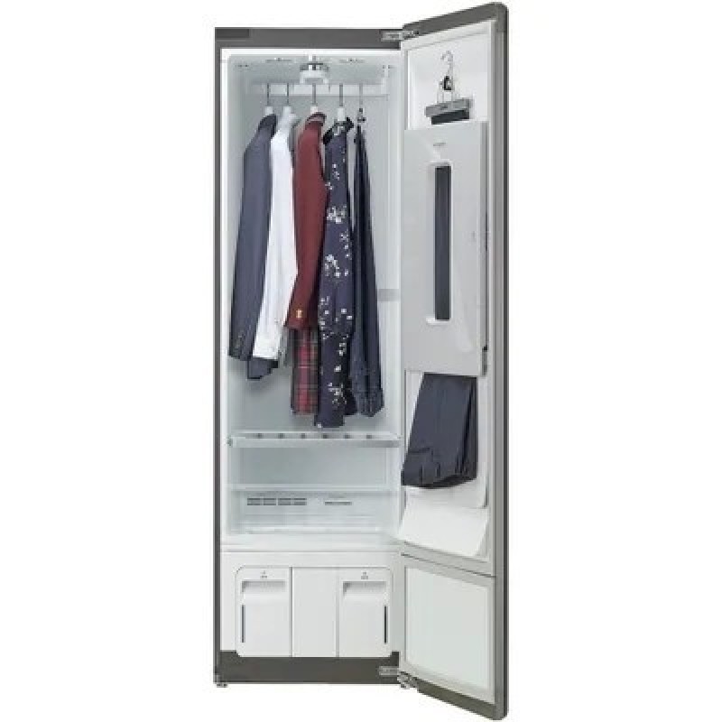 Простой и удобный уход за одеждой у вас домаОткройте для себя быстрый и эффективный способ придать вашей одежде опрятный и свежий вид. Теперь вы можете забыть о неприятных запахах, каплях влаги и складках на предметах вашего гардероба.Забота об одежде с помощью параСистема ухода за одеждой с помощью пара LG Styler с функцией TrueSteam позволит эффективно избавить одежду от запахов, бережно разгладить ее и удалить бытовые аллергены и бактерии. Благодаря усовершенствованной системе сушки вещей можно еще быстрее привести свой гардероб в порядок без усадки и повреждения даже самых деликатных тканей.«Встряхните» складки и неприятные запахиБережный уход за вашим гардеробом: костюмами, платьями, свитерами и другой одеждой. Одно нажатие на дисплей — и ваша одежда выглядит превосходно!Большая вместимость для всей семьиПодвижная вешалка без труда вместит до 5 предметов одежды, а пресс для брюк обеспечит уход даже для больших моделей обхватом в 120 сантиметров и длиной до 110 сантиметров.Эффективная защита от вирусов, бактерий и аллергеновУникальная технология обработки паром TrueSteam бережно воздействует на материал и удаляет до 99,9%­ опасных вирусов, бытовых аллергенов и бактерий. Технология TrueSteam абсолютно безопасна — пар на 100% состоит из воды и не содержит химических добавок.Основные характеристики- Установка: отдельностоящая- Тип загрузки: сушильный шкаф- Максимальная загрузка белья: 6.5 кг- Вид сушки: конденсационный с тепловым насосом- Тип двигателя: инверторный- Максимальное количество вещей: 5 вещей, 1 брюки- Уровень шума: 40 дБУправление- Тип управления: электронное- Переключатели: сенсорные- Размещение панели управления: на двери- Тип сушки: по таймеру- Количество программ: 3- Программы: освежить (интенсив 84 мин, стандарт 39 мин), сушка (стандарт 90 мин, быстро 20 мин, экспресс-сушка 30-150 мин, после дождя/снега 51 мин), гигиена (стандарт 93 мин, интенсивный режим 115 мин)- Сушка паром: да- Разглаживание складок: да- Поддержка Wi-Fi: да- Управление через смартфон: да- Поддержка мобильного приложения: LG SmartThinQ- Умный дом: LG ThinQДисплей- Тип дисплея: сенсорныйИндикация- Индикация времени до конца программы: даТехнологии- Функция пара TrueSteam: даЗащита и безопасность- Мобильная диагностика: даЭнергопотребление- Напряжение: 220 ВОсобенности конструкции- Форма дверцы: прямоугольная- Направление открывания дверцы: вправоДополнительные функции- Встроенный пресс для брюк: даЦвет и материал- Цвет: серый, зеркальныйКомплектация- Вешалка для рубашек: 3- Вешалка для брюк: в комплекте- Контейнер для воды: да- Инструкция: даРазмеры и вес- Высота: 196 см- Ширина: 60 см- Глубина: 59.6 см- Вес: 95 кг