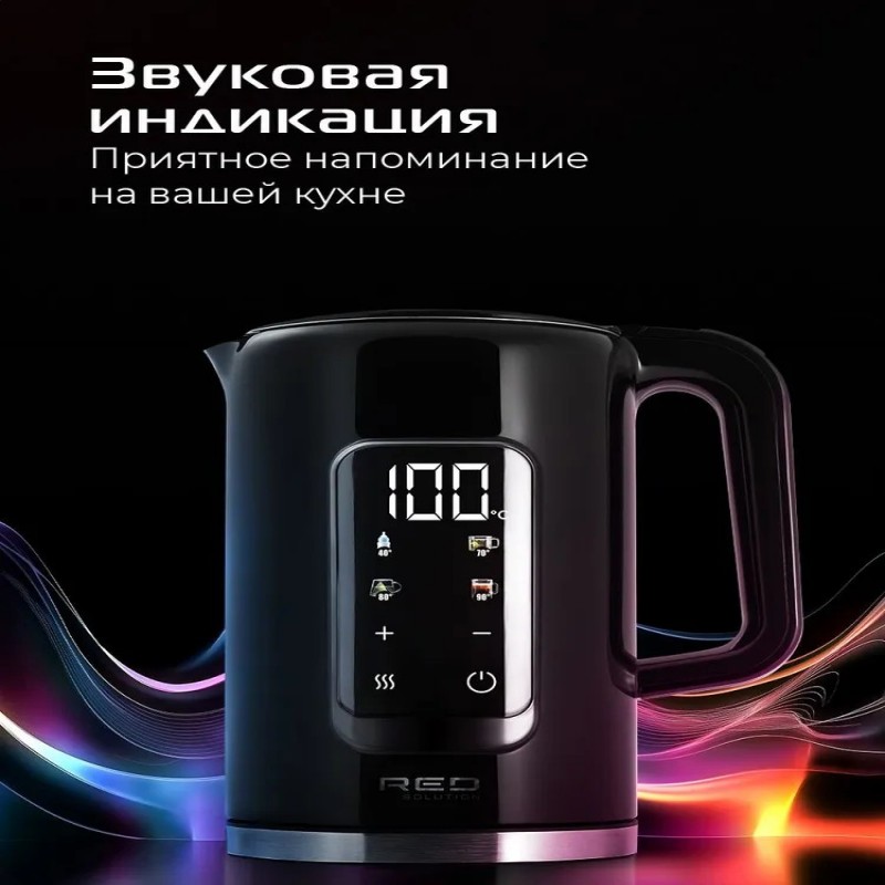 RED solution AM120D Colorsense (*Колорсенс)— электрический чайник объемом 1,7 л и мощностью 2000 Вт с большим светодиодным дисплеем, на котором отображаются режимы нагрева и температура воды. Благодаря двойной стенке вода в чайнике остывает медленнее, а корпус не нагревается, даже когда вода кипит. Эта модель станет прекрасным подарком и стильным украшением кухни.
