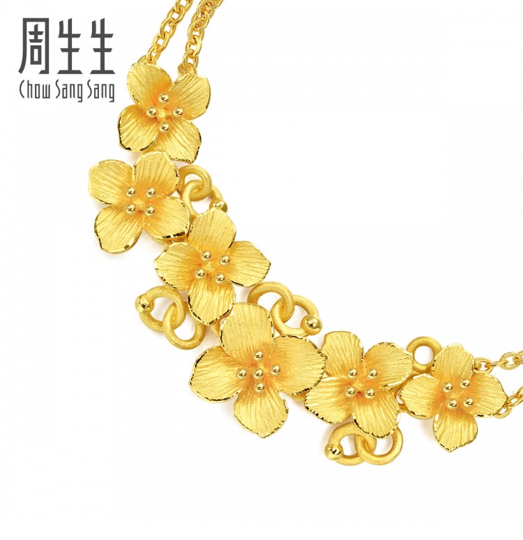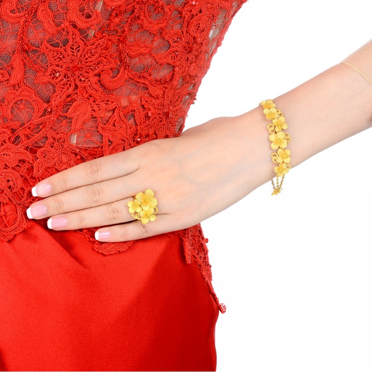 足金婚嫁套装绣球花黄金手链嫁妆