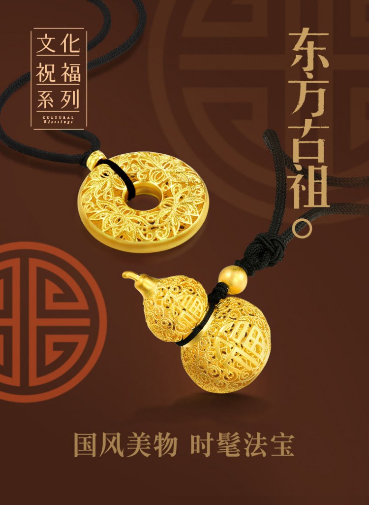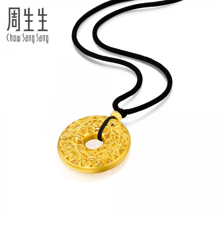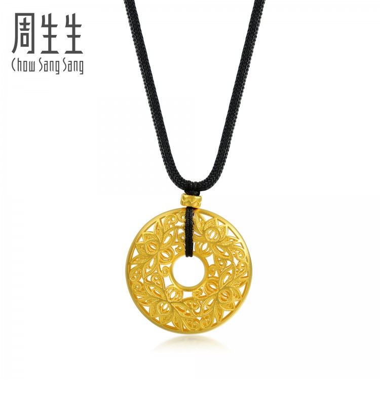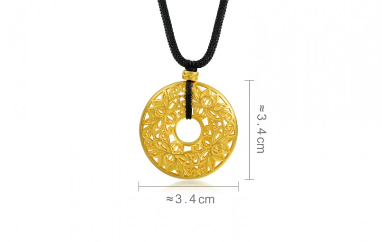 东方古祖古法黄金(足金)莲花平安扣吊坠项链颈饰