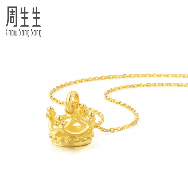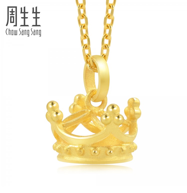 圣诞礼物周生生珠宝饰品足金皇冠吊坠项坠不含项链