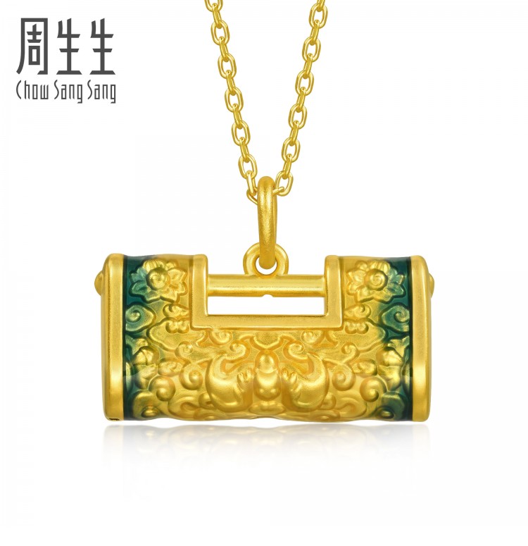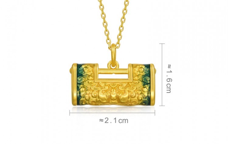 黄金(足金)文化祝福文化小品如意锁吊坠(不含项链)