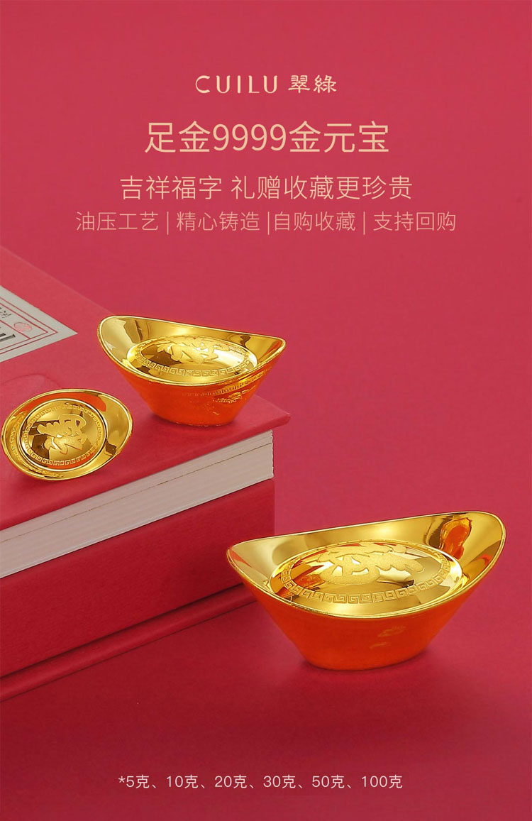足金9999黄金金条金元宝摆件纪念投资送礼