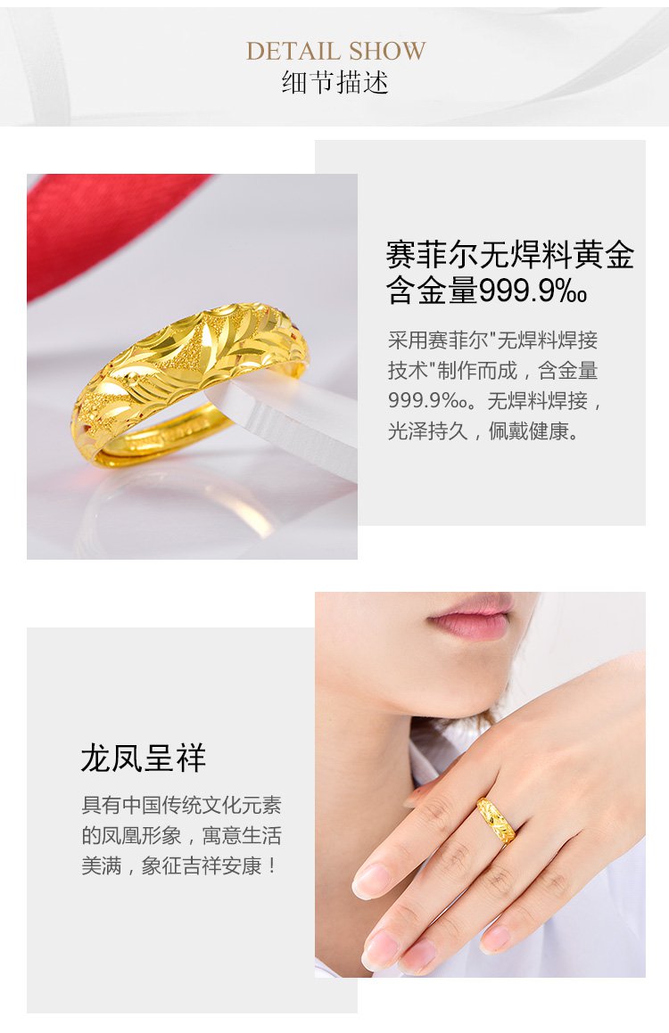 万足 龙凤吉祥足金999.9黄金戒指