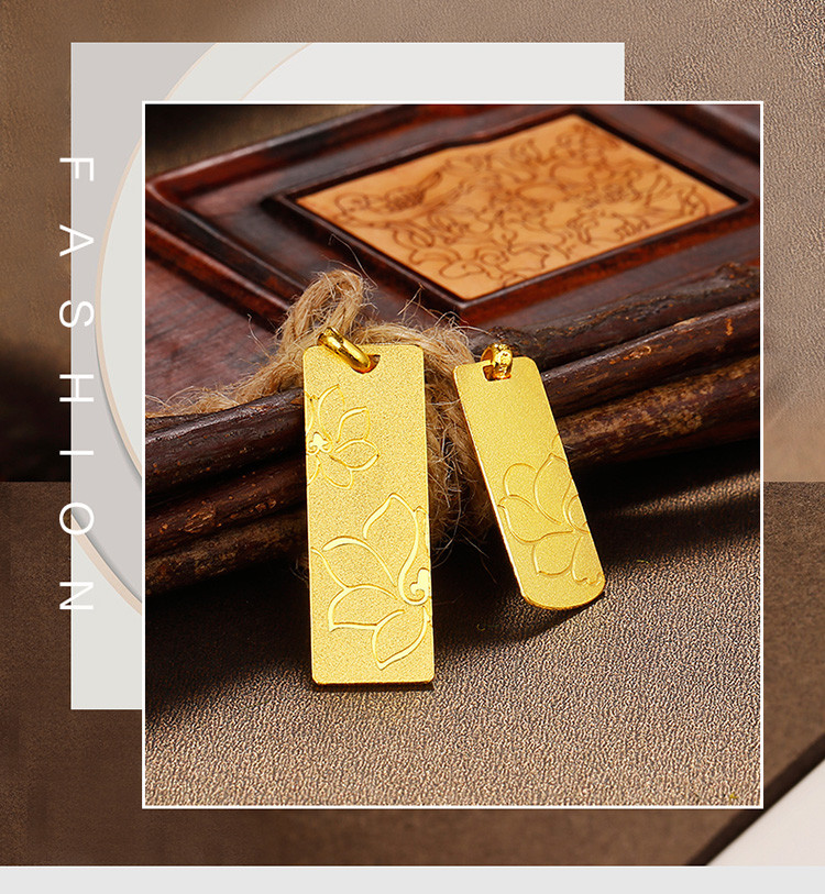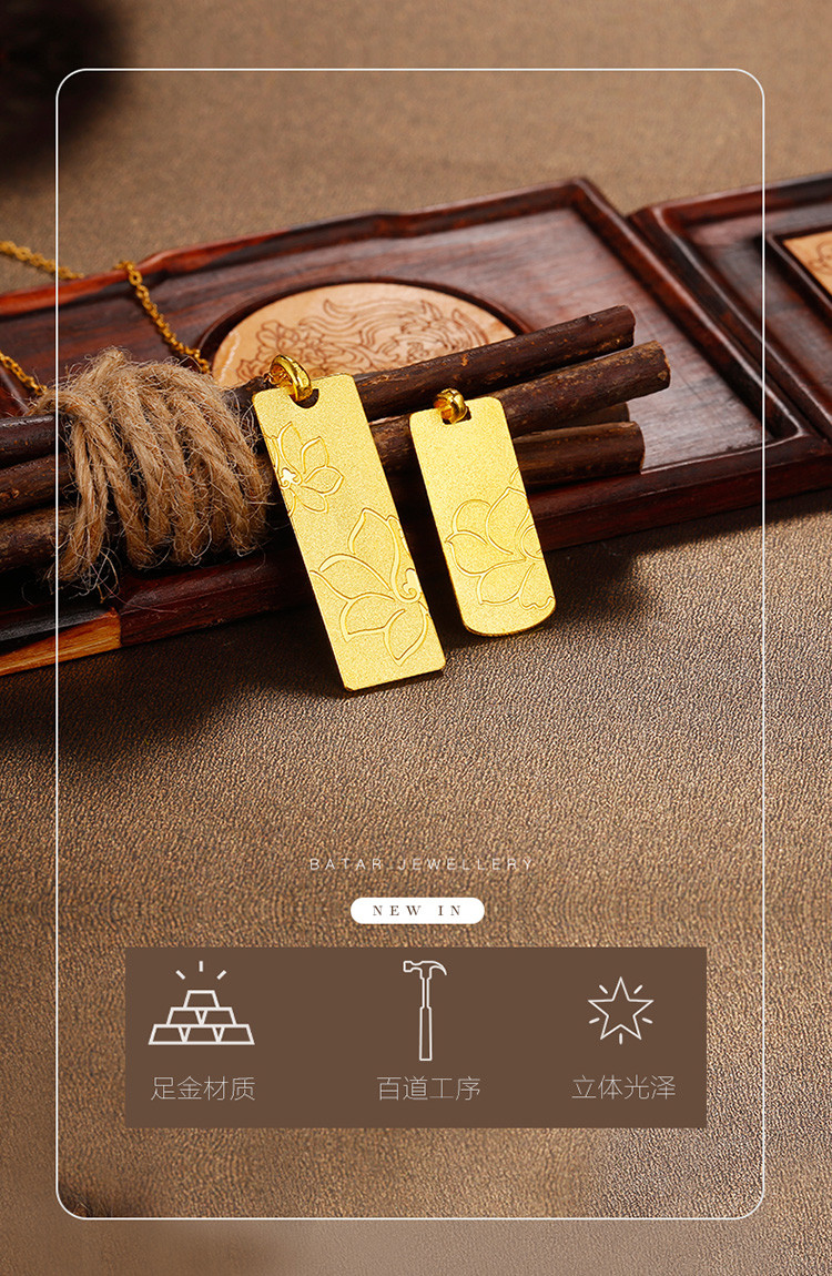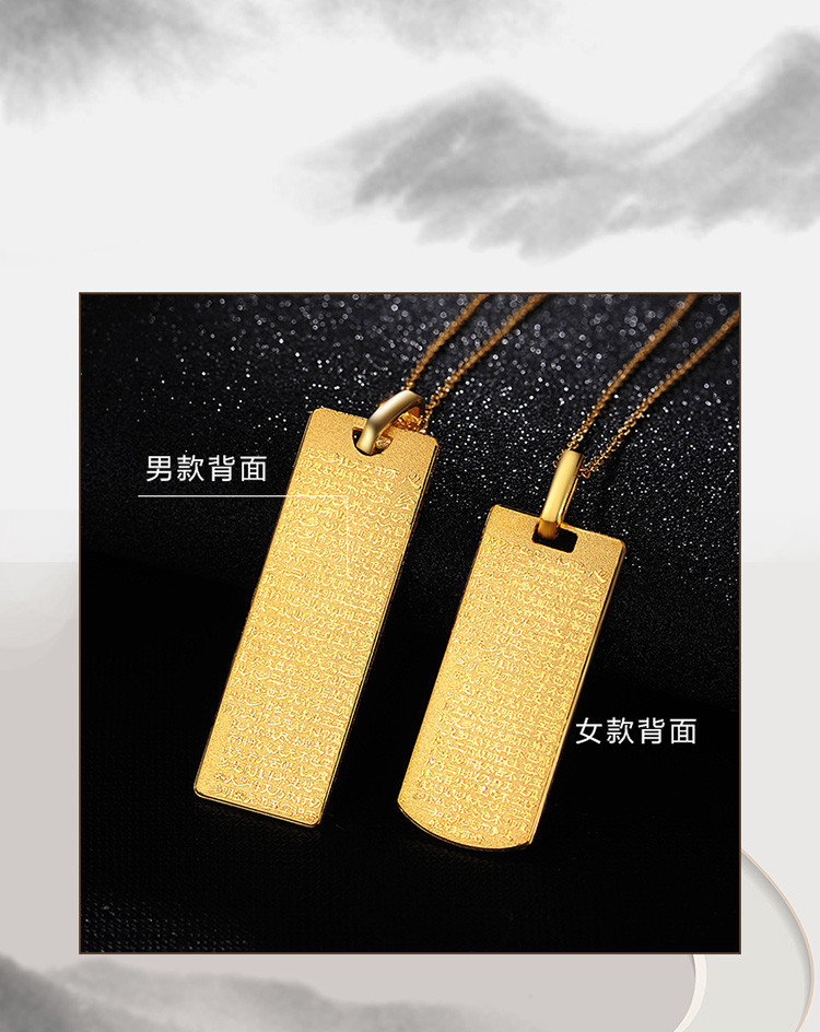 经典款999足金黄金心经莲花方牌黄金吊坠情侣男女款收藏黄金坠