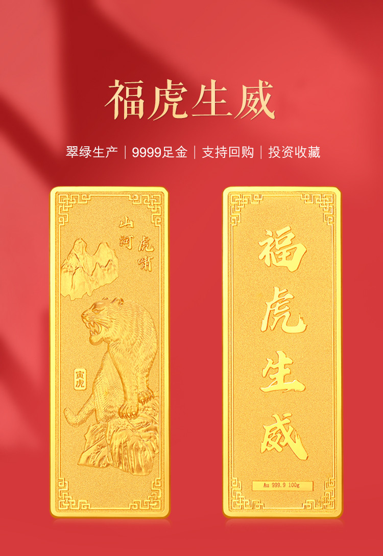 【新年送礼】足金9999金条收藏虎年金条投资送礼