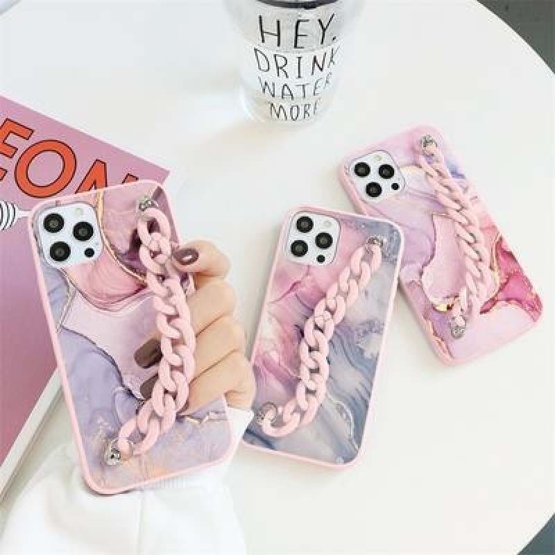 Мраморная цепочка на запястье Мягкий чехол из ТПУ для iPhone 13 12 11 Pro Max XR Samsung A52 A32 A50